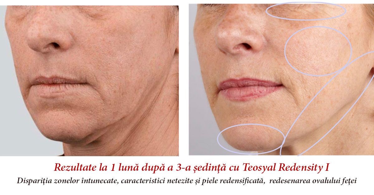 Primele semne ale îmbătrânirii apar, de cele mai multe ori, sub formă de riduri la nivelul feței, cu pielea lăsată din zona gâtului sau a decolteului. Chiar dacă aveți grijă de pielea dumneavoastră, o protejați de soare și vă hidratați constant, îmbătrânirea acesteia este inevitabilă. Urmele vizibile ale oboselii, ale pierderii conturului, a tonusului și a strălucirii pielii pot fi înlăturate cu tratamentul injectabil cu Teosyal Redensity I - un produs care are o formulă exclusivă, bazată pe acid hialuronic și o selecție de alte componente prezente în mod natural în piele.