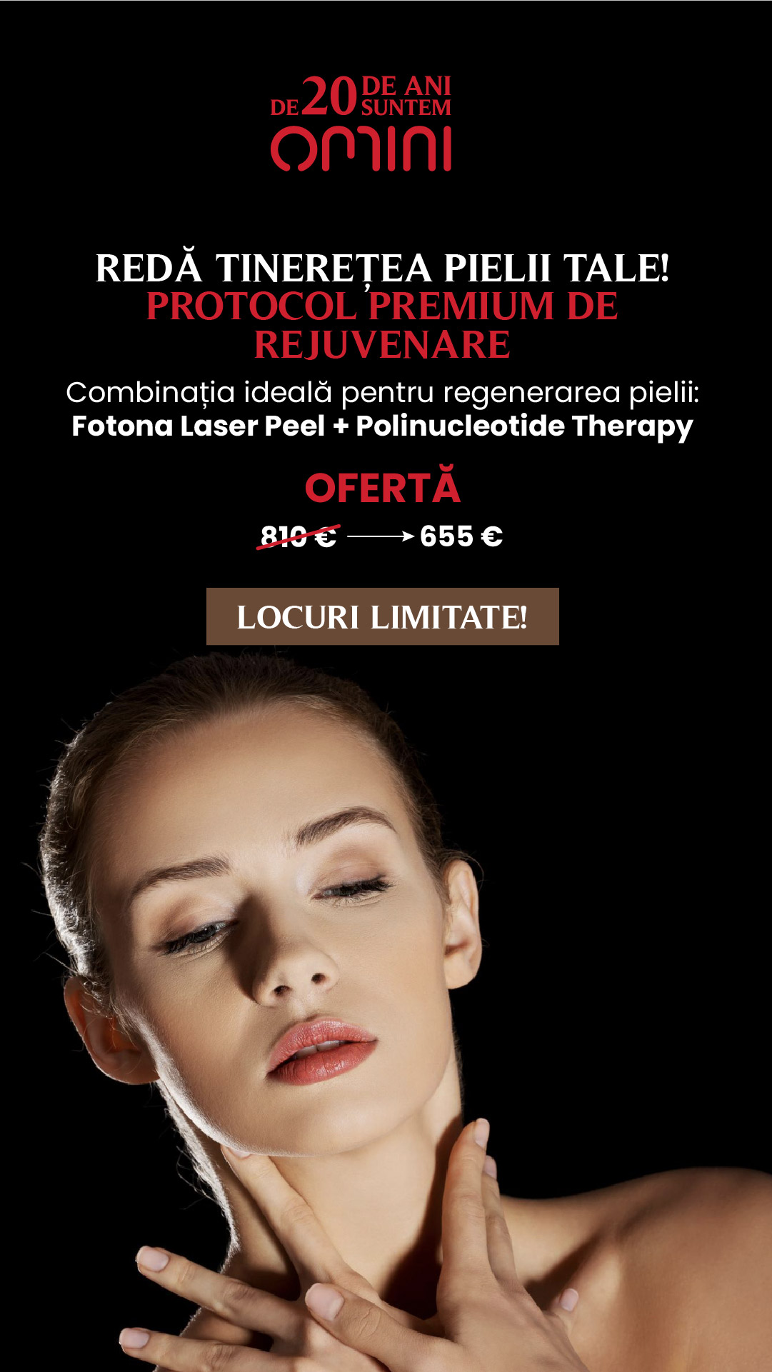 Descoperă un protocol inovator de regenerare a pielii, conceput pentru a reda tenului fermitatea, luminozitatea și aspectul tânăr. Tratamentul combină tehnologia Fotona Laser Peel cu terapia cu polinucleotide, o metodă modernă de biostimulare celulară.